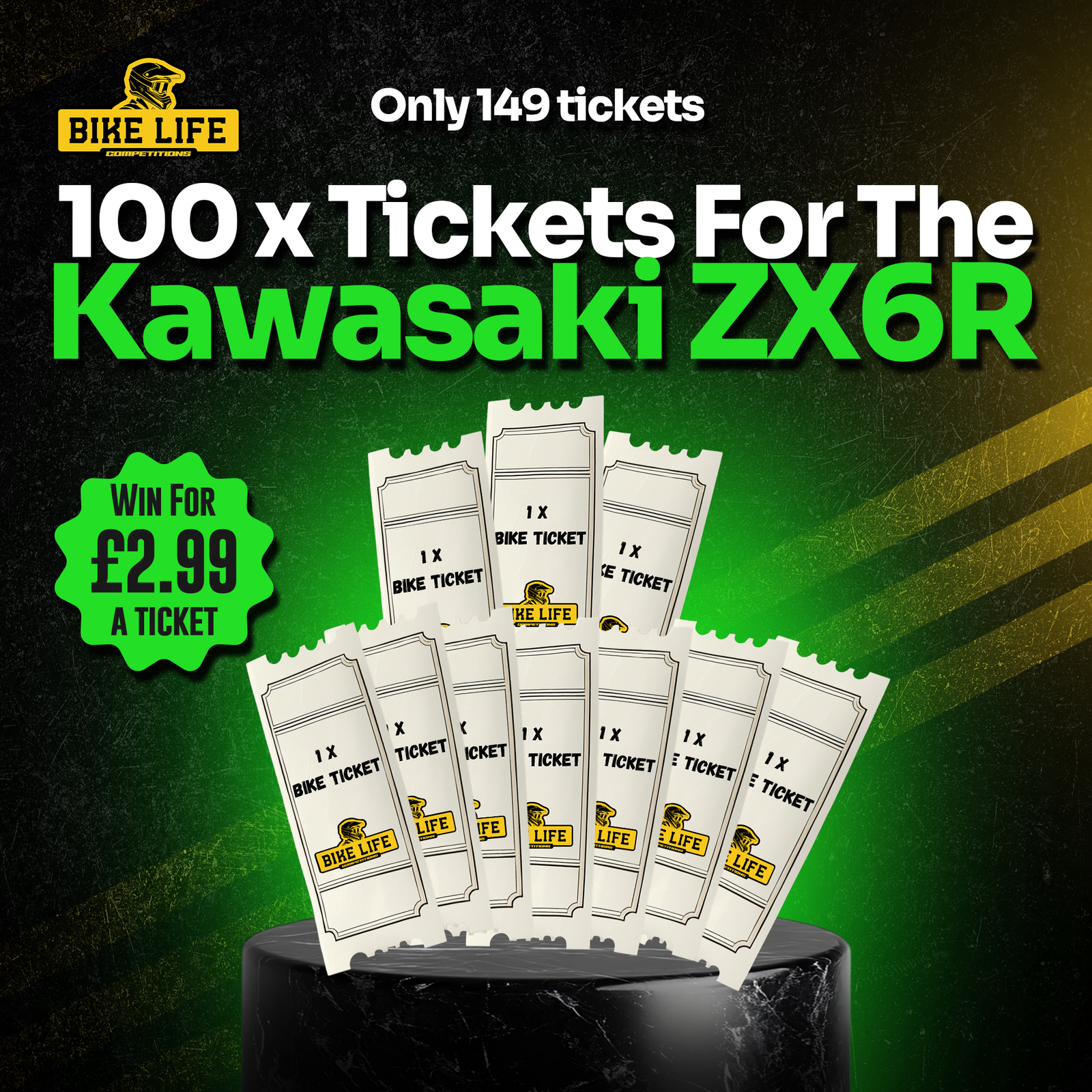 100 tickets for the Ninja ZX6R – Only 149 tickets!
