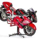 - The Rear wheel high (stoppie position) is perfect for working on the rear end of the bike and allows access to area's on your bike you would have struggled to get to before. This will raise the rear end of the bike higher off the ground than most workbench's!